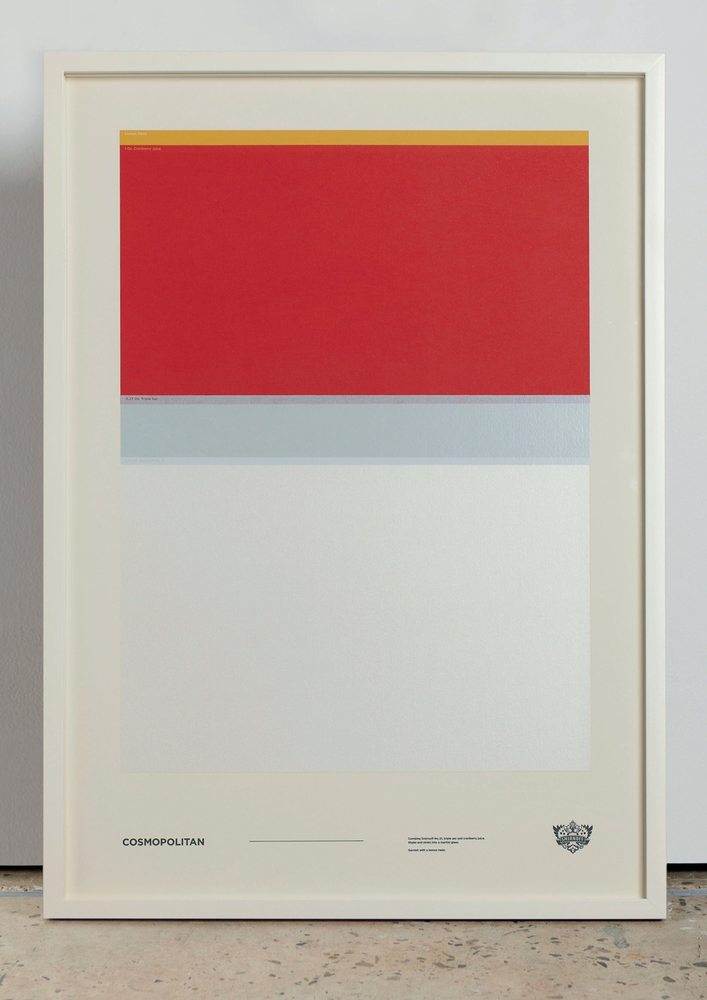 To launch Diageo's Mixionary cocktail website, we created a series of posters screenprinted by hand: each a graphical recipe for a single cocktail. These were exhibited at a launch event, and the posters were offered for sale. (Click thumbnails for slideshow.)